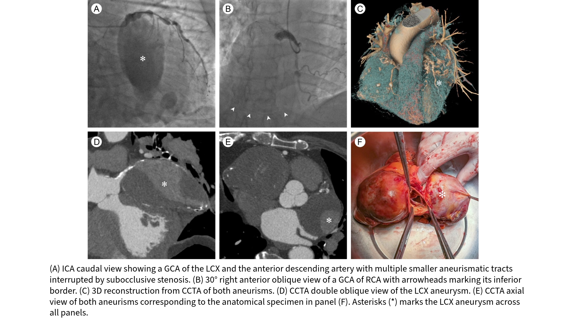 Background Coronary artery aneurysms (CAA) are uncommon (0.3–5% in angiographic series). Giant forms—defined as dilations >8 mm or >4× the normal adjacent diameter—are exceptional and lack standardized management. In adults with complex anatomy, therapeutic options (medical, percutaneous, or surgical) may be limited. To date, no cases of heart transplant as primary treatment for giant CAAs in adult patients have been reported. Case report We describe a 62-year-old man with chronic ischemic cardiomyopathy presenting with angina and dyspnea on minimal exertion. Coronary angiography and computed tomography angiography revealed giant aneurysms of the right coronary artery (77×71 mm) and circumflex artery (59×61 mm), both with extensive thrombosis and compressive effects on adjacent structures. The left anterior descending artery was chronically occluded. The absence of distal graftable vessels made coronary artery bypass grafting unfeasible, and the massive aneurysm size precluded percutaneous intervention. Following a multidisciplinary evaluation, the patient underwent orthotopic heart transplantation in June 2024. The postoperative course was complicated by transient renal failure requiring temporary dialysis, but the patient was discharged after five weeks with preserved graft function. At follow-up, endomyocardial biopsies excluded rejection, echocardiography confirmed preserved biventricular function, and exercise tolerance significantly improved. Discussion Giant CAAs involving multiple vessels with extensive thrombosis represent a rare and challenging condition. Literature mainly includes isolated reports describing surgical resection or bypass when suitable distal targets are available, or percutaneous exclusion using covered stents in selected anatomies. These strategies are not feasible with very large aneurysms, absence of graftable branches, and compressive effects. Pediatric experience includes transplantation for ischemic cardiomyopathy due to Kawasaki disease, but evidence in adults is virtually absent. This case suggests that heart transplantation may be a viable therapeutic option in extreme scenarios. Conclusions When conventional revascularization is impossible, heart transplantation may represent an effective strategy for adults with non-operable giant CAAs. This case underscores the role of multidisciplinary assessment, the importance of multimodality imaging, and the need to expand the scarce evidence on this rare condition.