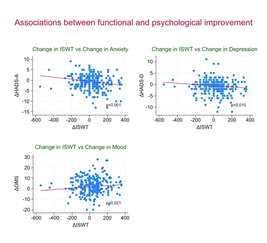 Background: Cardiac rehabilitation (CR) improves exercise capacity and psychological well-being after cardiac interventions; however, determinants of functional and psychological recovery and their inter-relationship over time remain incompletely defined, particularly across different cardiac diagnoses. Methods: In this prospective longitudinal study, patients with coronary artery disease (CAD) or valvular heart disease (VHD) enrolled in a structured 1-year CR program in 2023, were evaluated at baseline, 6 months, and 12 months. Functional capacity (FC) was assessed using the Incremental Shuttle Walk Test (ISWT). Psychological outcomes included anxiety and depression, measured by the Hospital Anxiety and Depression Scale, and positive mood, assessed by the Global Mood Scale (GMS). Longitudinal trajectories were analyzed using linear mixed-effects models with time, diagnosis, and time × diagnosis interaction as fixed effects and patient as a random intercept, adjusting for baseline demographic, clinical, metabolic, and functional variables. Associations between changes in ISWT and psychological outcomes were explored using change-score analyses. Results: Exercise capacity improved significantly over time, with an increase in ISWT at 12 months (adjusted p=0.013), independent of diagnosis (time × diagnosis p=0.35). Anxiety and depression scores decreased significantly (all p < 0.01), while positive mood increased over time (p< 0.001). Baseline FC emerged as a robust independent determinant of recovery. Higher baseline ISWT was associated with greater functional performance at follow-up (β= 0.78; 95% CI 0.69–0.87; p<0.001) and more favorable psychological trajectories, independently predicting lower anxiety (β= −0.004; p=0.018) and depression (β= −0.004; p=0.006). Improvements in ISWT over 12 months were associated with concurrent reductions in anxiety (p< 0.001) and depression (p=0.010), and with improved positive mood (p=0.021). Older age and female sex independently predicted lower exercise performance, while female sex was also associated with higher anxiety; other clinical variables showed weaker or borderline associations. Conclusions: Cardiac rehabilitation is associated with parallel improvements in functional capacity and psychological well-being over one year, irrespective of cardiac diagnosis. Baseline functional status is a key determinant of recovery, supporting integrated functional and psychological assessment within comprehensive CR programs.