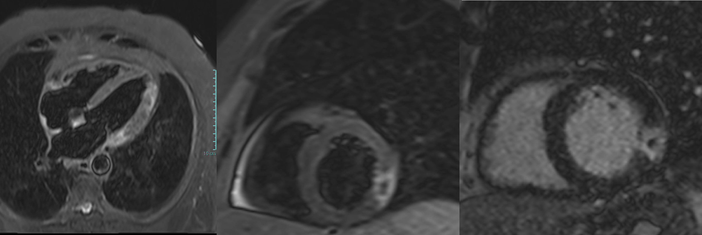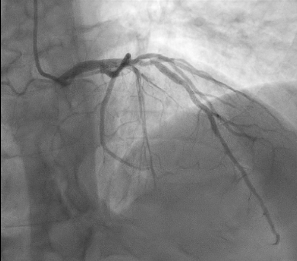 We report the case of a 65-year-old man presenting with chest pain occurring the night before. ECG showed negative T waves in the inferolateral leads. Laboratory revealed rising troponin (0.139 to 0.688 ng/mL). Transthoracic echocardiography demonstrated preserved systolic function without regional wall motion abnormalities (ejection fraction 55%). The day after, complete normalization of the ECG was observed. Patient underwent coronary angiography which revealed an intermediate stenosis of the left anterior descending artery (LAD) not functionally significant (iFR 0.91, FFR 0.87) (Fig. 1). 24-hour Holter ECG monitoring documented episodes of atrial fibrillation. He was discharged on day five with a diagnosis of myocardial infarction with non-obstructive coronary arteries (MINOCA) and referred for cardiac magnetic resonance (CMR). Discharge therapy included Aspirin, Edoxaban and Rosuvastatin/Ezetimibe. Subsequent CMR revealed myocardial edema and late gadolinium enhancement with a transmural ischemic pattern involving the basal inferolateral and anterolateral segments and the apical lateral segment and microvascular obstruction in the basal inferolateral segment, consistent with transmural myocardial infarction (Fig. 2). A subsequent review of the coronary angiogram identified an intermediate, hazy lesion in the proximal circumflex/obtuse marginal branch, compatible with the culprit lesion (Fig. 3). The patient was contacted and clopidogrel 75 mg daily was added, resulting in triple antithrombotic therapy for one month. At 30-day follow-up, the patient remained asymptomatic. This case highlights the pivotal role of CMR in clarifying the diagnosis and guiding therapy in MINOCA, even when the underlying etiology remains uncertain between coronary embolism and unstable plaque.